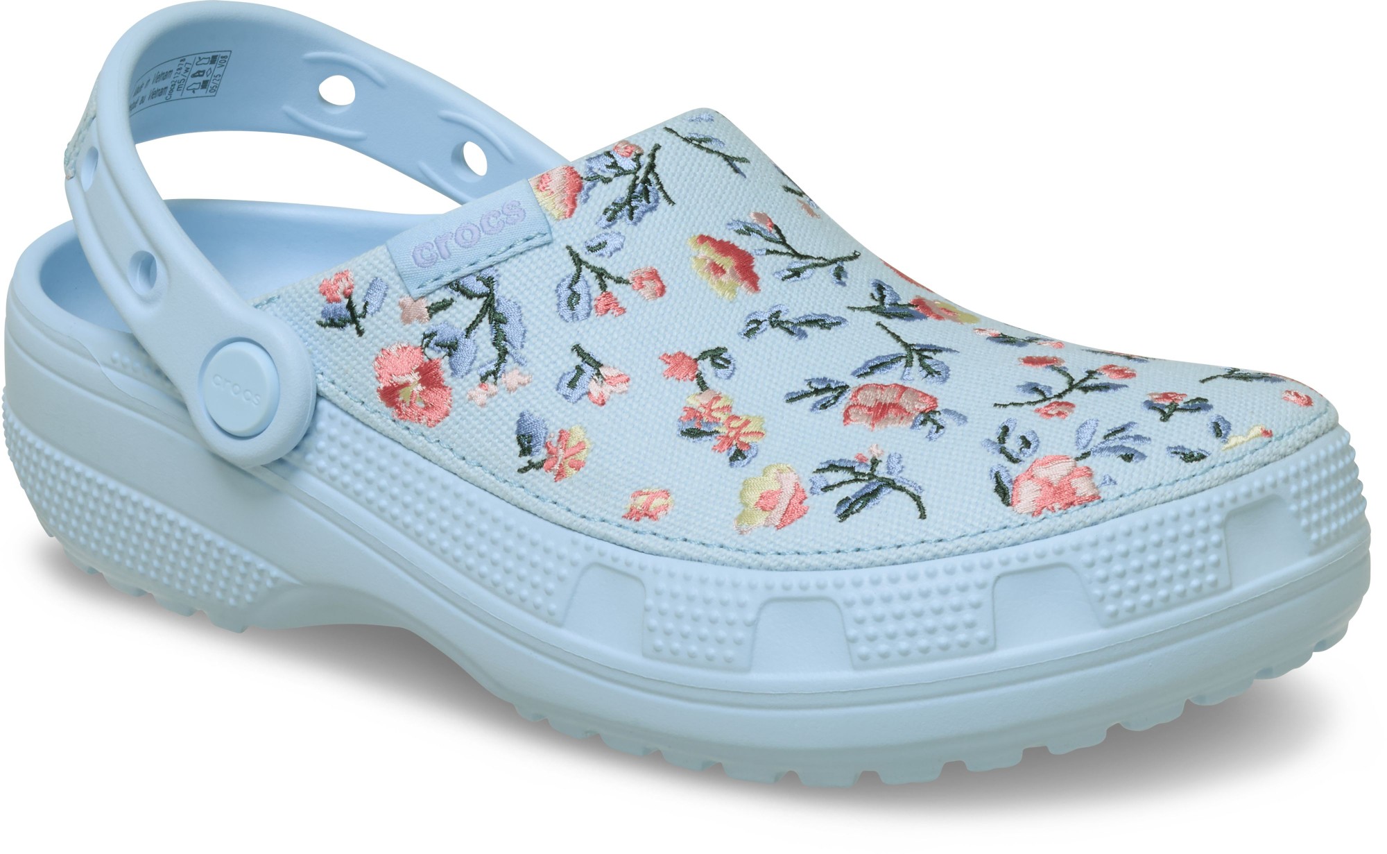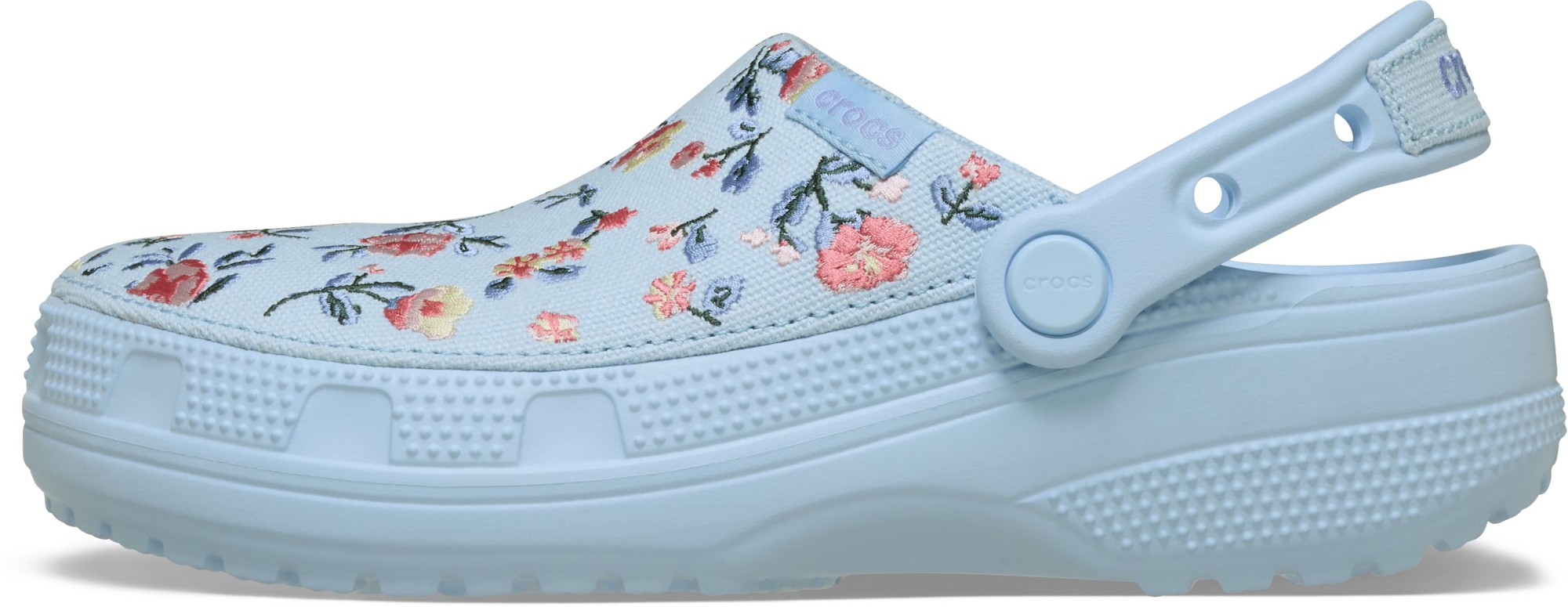 Your new favorite clog, now with embroidered details! The Classic Crafted Floral Clog offers all that you love about Crocs clogs, now with a floral embroidered canvas upper that is 100% textile. You’ll still enjoy the same Classic Clog fit and features, including a Croslite™ outsole for durability and support. And the embroidered upper provides artistic floral details and creative spirit. Plus, the Jibbitz™ holes on the heel straps make it easy to personalize your look even more. For a fresh and artistic take on the Crocs comfort and style you love, step into the Classic Crafted Floral Clog.