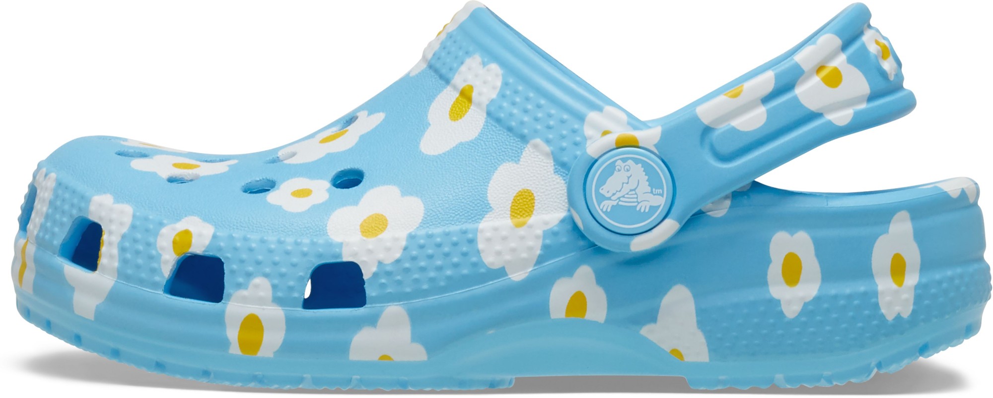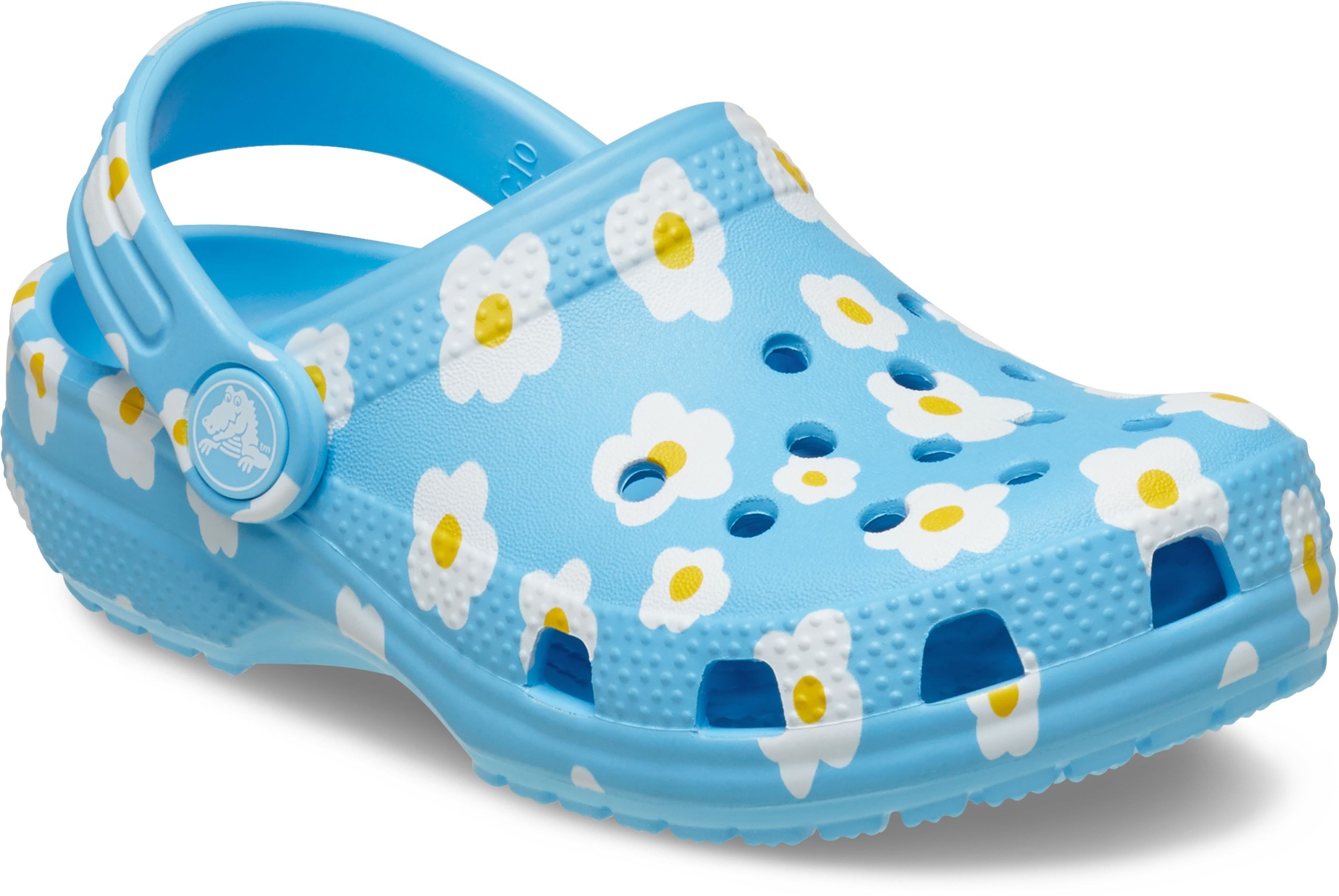 A charming daisy graphic provides extra style to this version of the iconic clog. The graphic helps little ones show off their love of daisies, while the Croslite™ foam construction keeps them light and easy to wear. Grounded in comfort, spiked with personality.