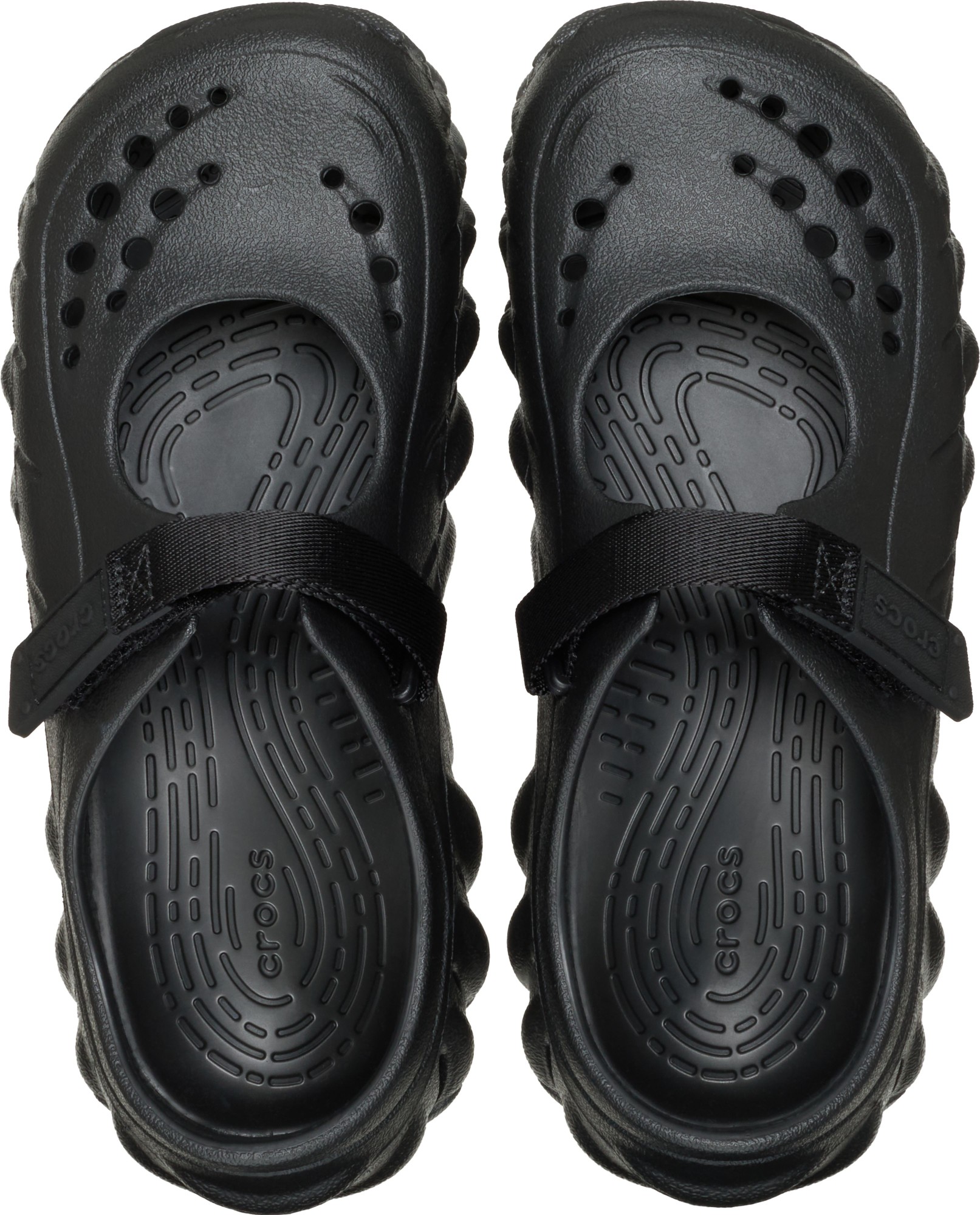 Naudi julget Echo hoiakut naiselikus ja kergesti kantavas siluetis. Viimistletud Mary Jane’ist inspireeritud pealisosa pakub stiilset välimust, samas kui reguleeritav takjakinnitus jalalaba keskosas võimaldab täpset sobivust. LiteRide™ sisetald tagab esmaklassilise Crocs mugavuse, kõrgem kannakupp suurendab katvust ja turvalisuse tunnet ning välistalla sisse integreeritud kummist detailid parandavad haarduvust. Lisaks võimaldavad seitse Jibbitz™ ava pealisosas jalanõusid isikupärastada. Kitsamale ja viimistletud Echo liistule ehitatud Echo Mary Jane klotsid ühendavad tänavastiili ja igapäevase mugavuse.