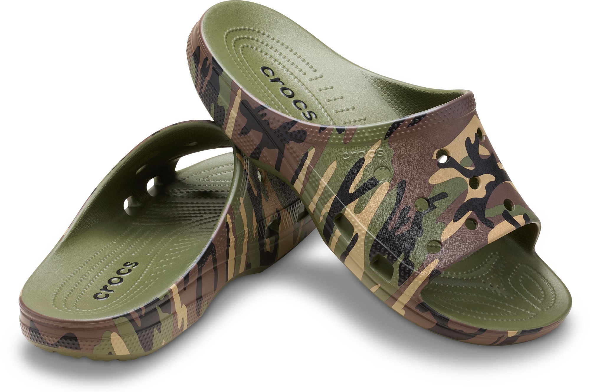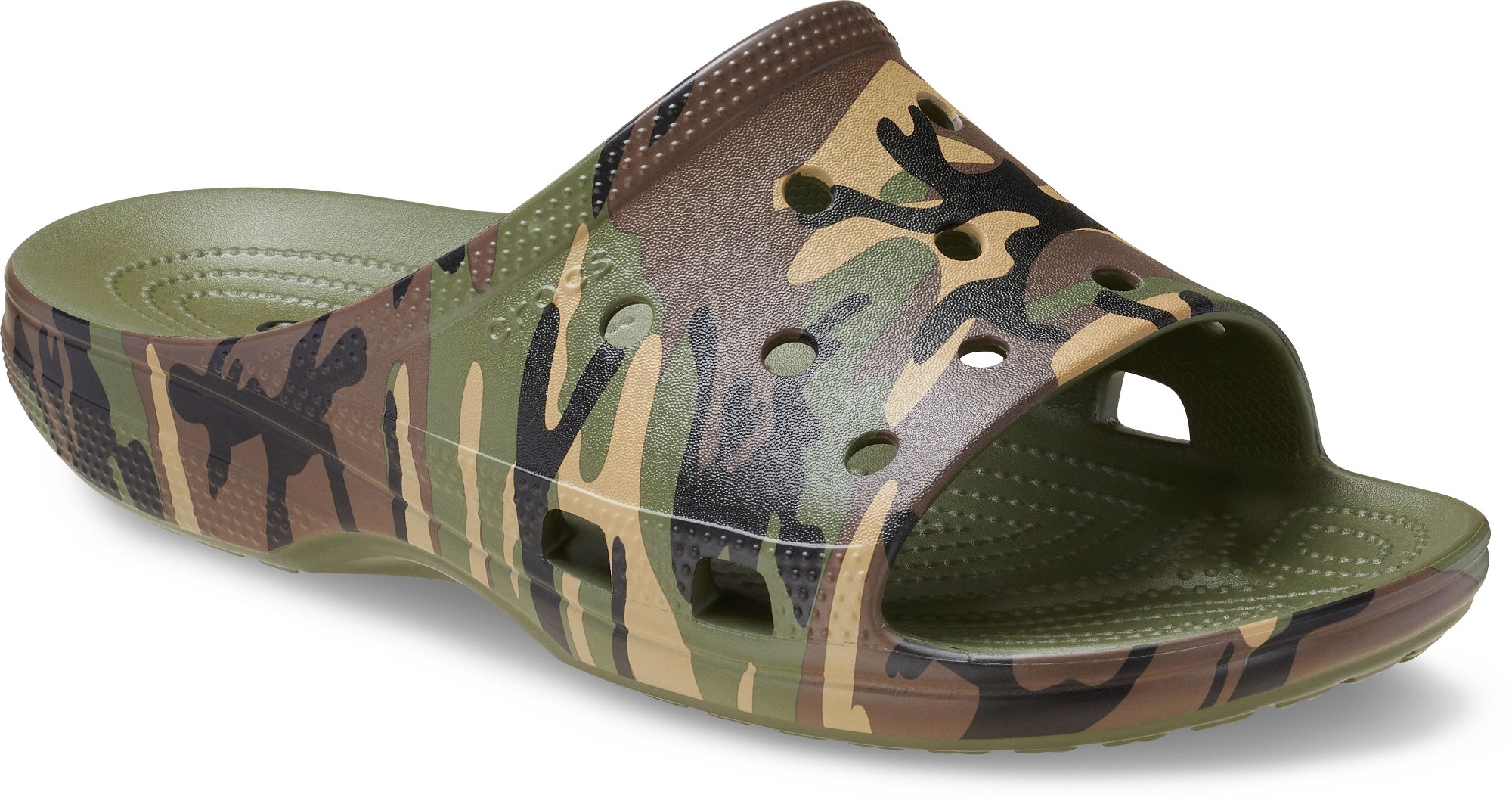 Introducing our Men’s Saturday Slide! We’ve created a new slide that builds on the simplicity and versatility of our iconic Classic Clog. The modernized silhouette provides Iconic Crocs Comfort™, and we’ve created specific versions for men and women to optimize your fit and comfort. Plus, the Jibbitz™ holes allow you to put your personality on full display. And this version features a stylish camo print graphic. Step into the Men’s Camouflage Saturday Slide to enjoy classic Crocs comfort and style in a versatile and easy to wear slide.