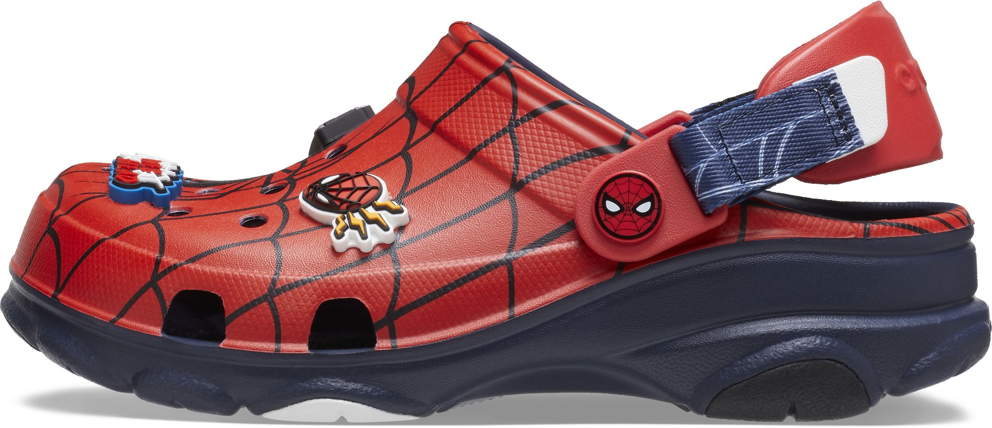 Kids can embrace their superpowers and passion for Spidey when they slip into the Spider-Man All-Terrain Clog. This adventure-ready clog is prepped for it all, and they’ll also enjoy a Spider-man inspired graphic and a collection of unique Spider-Man Jibbitz™ charms in this Spider-Man version. The rugged outsole provides traction and support while the adjustable turbo heel strap and ventilation ports help this clog keep up with an adventurous lifestyle. And the lightweight Croslite™ construction makes them a practical choice for any outing. These unique clogs can help young fans enjoy some Spidey fun!